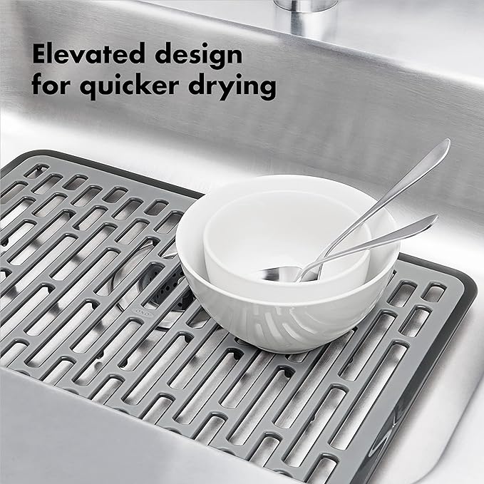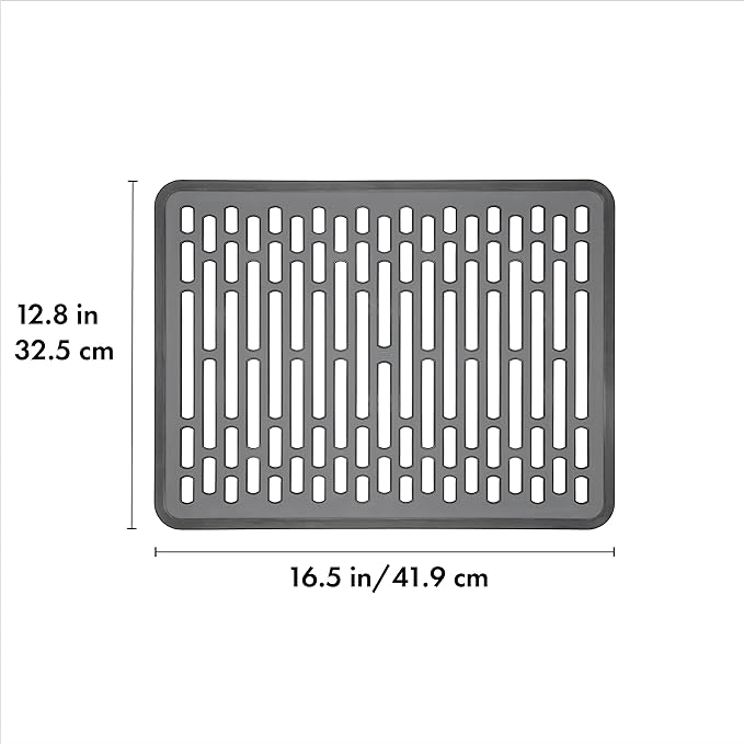 Soft silicone is PVC-free and provides cushion to protect sink, glasses and dishes from scratching and chipping Feet elevate mat to allow for water flow and aeration Pattern allows for cutting a hole to accommodate most drain openings Small Sink Mat is the perfect size for most double sinks Heat-Safe silicone for placing pots and pans in sink directly from stove. Dishwasher safe