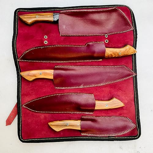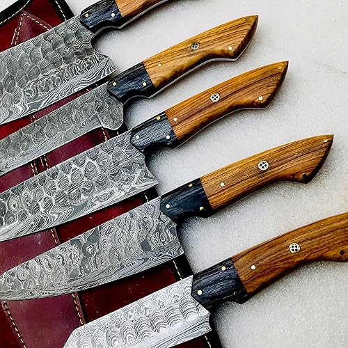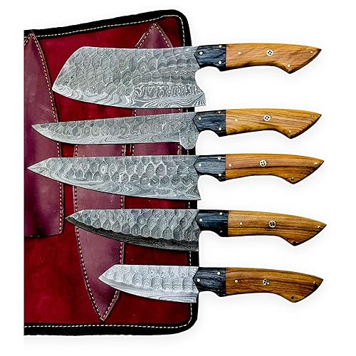 MDM Handmade Damascus Steel Kitchen Knife Set of 5pcs With sheath Chef knife set Chef Knives set Kitchen Gadgets Handmade Kitchen Gifts Viking Kitchen Knife For Men, Mothers day gifts for friend