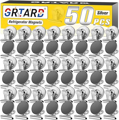 Magnetic Clips 50 Pack Office Products, Stainless Steel Clips Peferct for House Office School Use, Hanging Home Decoration, Photo Displays, 1.2 Inch, (Silver)