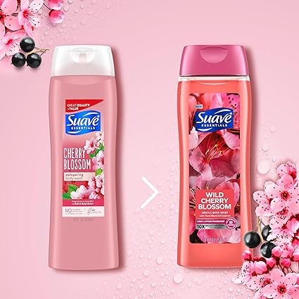 Allow us to reintroduce ourselves! Suave Essentials Body Washes are now new and improved, featuring a new look, long-lasting fragrances, and 10x the moisturizers than before. Soak in the blooming long-lasting aroma of cherry blossom, sweet jasmine and luscious black currant. Our creamy lather in our moisturizing body wash features a floral blend oil essence and is bursting with bubbles, leaving your skin feeling instantly hydrated and silky smooth. Now with 10x more moisturizers than before! This body wash and skin cleanser, with infused Vitamin E, will leave you feeling fresh and pampered long after you shower. All Suave Essentials Body washes are formulated without parabens or phthalates. Suave is certified Cruelty Free by PETA. Globally, Suave does not test on animals. Discover Suave Essentials Body Wash with fragrances as beautiful as Bath and Body Works. Whether you're looking for something fresh, sweet, floral, or fruity, we got you and your family covered!