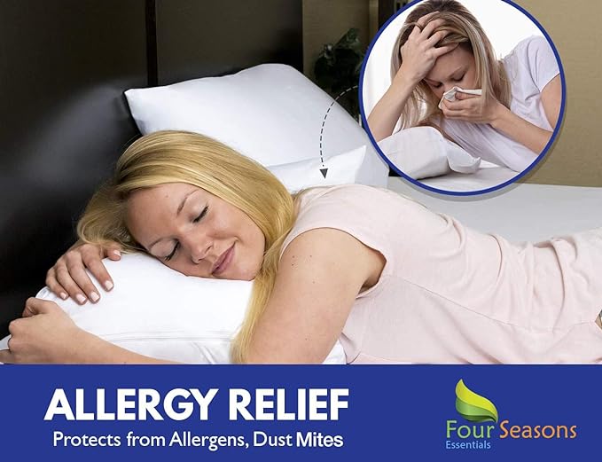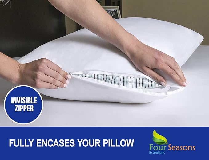 Set includes 2 Standard Size Pillow Protectors measuring 21" (Width) x 27" (Length). WATERPROOF - Whether you have pets or kids, accidents and spills happen. This 100% waterproof pillow protector has a polyurethane inner lining that blocks liquids and moisture from getting in and keeps your pillow waterproof, dry and protected! SOFT & NOISELESS - Stretchable, breathable fabric keeps liquids, contaminants out without compromising comfort. Designed to be soft and completely noiseless, you will not see or hear crinkles. HYPOALLERGENIC - Impenetrable cover helps you breathe easy. Sleeping on an uncovered pillow can exposes you to different types of contaminants making it difficult to breathe and sleep. Seal out dust, pet hair etc. for good! ZIPPERED PROTECTOR - Zipper closure completely seals off the pillow! Made of high quality polyester (top surface) and waterproof polyurethane (inside lining).