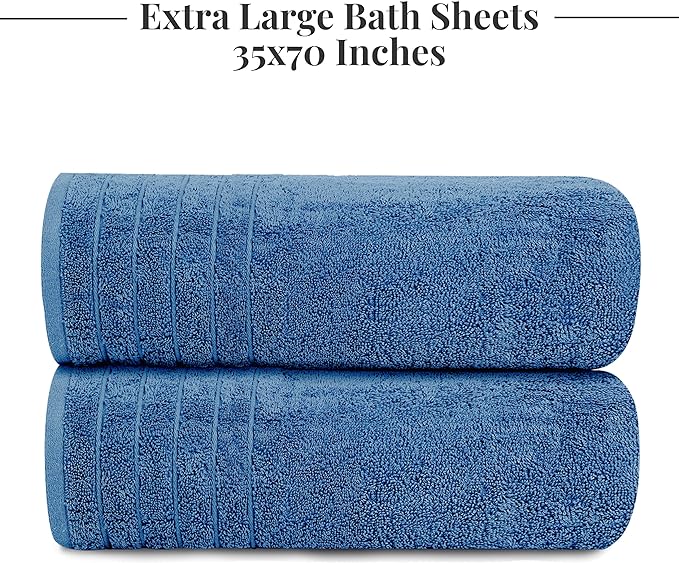 Tens Towels Large Bath Sheets, 100% Cotton, 35x70 inches Extra Large Bath Towel Sheets, Lighter Weight, Quicker to Dry, Super Absorbent, Oversized Bath Towels (Blue)