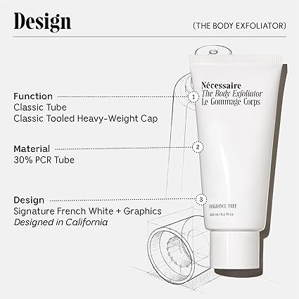 SKINCARE FOR THE BODY: A weekly physical and chemical exfoliation treatment with AHA/BHA/PHA, Charcoal and Volcanic Pumice to detox and resurface the skin. CLINICALLY-PROVEN INGREDIENTS: 6.5% Physical Exfoliation, 1.25% Chemical Exfoliation are infused into a Plant Surfactant base. Charcoal Bamboo provides a skin detox while Volcanic Pumice and AHA/BHA/PHA help to resurface skin. FORMULA FACTS: Hypoallergenic. Dermatologist-Tested. Non-Comedogenic. Fragrance-Free. No SLS / SLES. Cruelty-Free. Certified Vegan. DIRECTIONS: The Body Exfoliator is designed as part of a weekly ritual. Use 1-2 times a week or as desired. Apply all over body. Massage for foam. Rinse well. FOOTPRINT: The Body Exfoliator comes in a 30% PCR Tube. Certified B Corp. Certified Climate Neutral. Certified Plastic Neutral. 1% For The Planet Member. FSC-Certified.