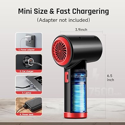 Compressed Air with Powerful 3-Speed Airflow: Equipped with three adjustable speed settings, this electric air duster delivers powerful airflow to meet a variety of cleaning needs. Easily switch between speeds for light dusting or deep cleanin Air Duster is Compact and Portable: Designed with a mini size, this cordless air duster is easy to handle and store. Its lightweight and portable design make it perfect for use at home, in the office, or on the go. Canned Air with Versatile Applications: Ideal for cleaning keyboards, cameras, electronics, and delicate instruments. This versatile air blower is also great for removing dust from hard-to-reach places like vents, fans, and window sills. Electric Air Duster is Fast Charging: Enjoy the convenience of quick recharges with the included USB charging cable. The fast-charging capability with 10w charging power ensures that your air duster is always ready for immediate use. More Cost-Effective: Replace traditional air can spay with this rechargeable compressed air duster. It provides a sustainable and cost-effective solution.