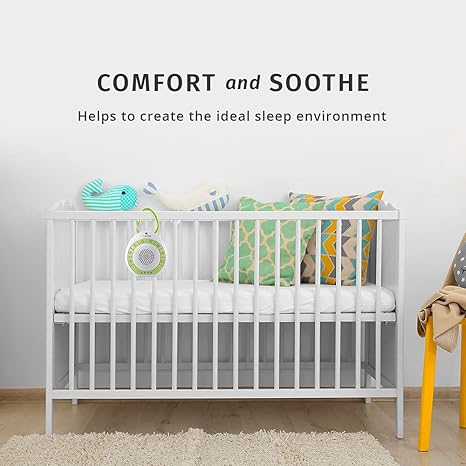 Soothing Sounds: Helps to soothe and comfort little ones with 4 relaxing sound options; choose between Heartbeat, White Noise, Ocean, or Lullaby to create a peaceful sleep environment anywhere Auto Shutoff: Designed with safety in mind, the battery-operated SoundSpa is cord-free; auto-off timer conserves energy with 15, 30, or 45-minute interval options; requires 3 AAA batteries (not included) Durable & Portable: Made with durable plastic material (BPA free) to withstand most bumps and tumbles; small and lightweight, it fits conveniently in diaper bags, luggage, purses, and more Integrated Features: Adjust the volume or choose your sound option directly on the sound machine; integrated clip allows quick accessibility and easy transport between strollers, bags, and car seats What’s in the Box: (1) MyBaby Portable SoundSpa; (1) Quick-Start Guide; (1) 90-Day Warranty