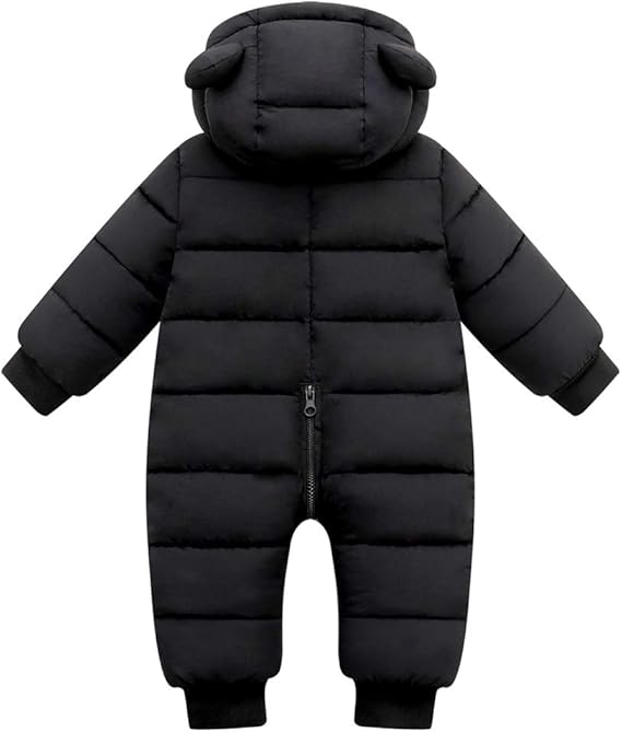 High quality material: Our infant and toddler snowsuit is comfortable to wear, filled with high quality polyester, making your baby feel warm and cozy in cold weather.The baby boys and girls snow suits is made of high-quality waterproof & windproo fabric,the baby warm jumpsuit can effectively prevent your baby from getting wet in sudden rainy or snowy weather. Fashion cartoon design: This beautiful cartoon bear hooded jumpsuit will be the perfect way to dress up your little baby.This baby boys and girls winter snowsuit suitable for casual and formal occasions like birthday, baby shower, photo shoot. Perfect gift for Christmas, Halloween, Thanksgiving, party, and holiday. Size: This toddler baby snowsuit have 4 sizes (0-3-6 Months,6-9-12 Months,12-18 Months,18-24 Months) . Please kindly check the size chart in the last image before purchase. Easy to wear: With zipper closure in the front, this toddler warm winter jumpsuit is easy to put on and take off. Quality meets value: This baby snow wear is recommended to wash by hand or machine wash with dry at low heat. The newborn toddler winter snow suit for baby is exquisitely crafted and the cuts are moderate in order to create a baby winter snowsuit.