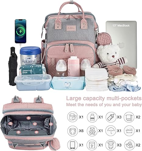 【Diaper Changing Station】 JOLLITO's diaper changing backpack is more than just a backpack - it's a portable changing station! With a soft mattress and shading cloth, you can change your baby's diaper or let them take a nap in a safe and hygienic space. Perfect for on-the-go parents who want to be prepared for anything. 【Large Capacity】 This backpack is a true organizational powerhouse. With 19 different pockets to store all your baby and mom essentials, you can easily fit everything you need for a day out with your little one. Plus, the front pocket is equipped with aluminum foil to keep your baby's bottle warm and cozy - no more cold milk worries! 【Versatile and Tech-Savvy】 JOLLITO's backpack is versatile and technologically advanced with a built-in USB port for charging devices on-the-go. Its shoulder strap can attach to a stroller for more convenience. Ideal for travel, shopping, or errands, this backpack has got you covered. 【High-Quality】 JOLLITO's backpack is made with top-quality materials that ensure durability and reliability. The waterproof fabric provides excellent protection against the elements, while the sturdy shoulder straps, buckles, and zippers ensure the backpack can withstand daily wear and tear. 【Perfect Gifτ Ideas for New Parents】 Whether you're a new mom, dad, or parent-to-be, JOLLITO's diaper changing backpack is a must-have. With its unisex color and versatile design, it's perfect for any parent on-the-go. Give the gifτ of convenience and style with JOLLITO!