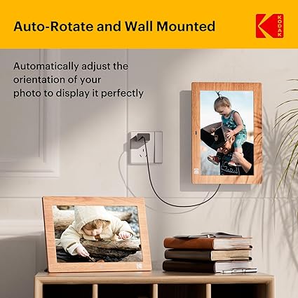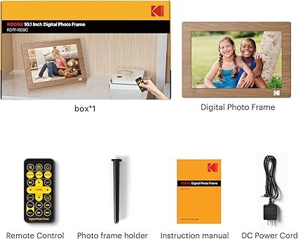 【NOTICE】: This product is not use with wifi, it only work with SD card and USB ports. If you want a WIFI DIGITAL PICTURE FRAME PLEASE CHOOSE ASIN:B0CWNMPFMV. 【EASY TO USE】: No need to dowload any App, just use SD card to No need to connect to WiFi and download any APP, this electric digital frame is just a basic electronic photo frame with USB ports and SD card slot. This user-friendly interface makes it easy for users of all ages to use, especially the elderly. 【Auto-Rotate】: The digital photo frame can automatically rotate pictures to adjust the orientation, you can switch between horizontal and vertical versions at will, and you can also hang frames on the wall as a decoration for the best viewing experience. 【Exceptional Picture Quality】: The Digital Photo Frame is equipped with a 10.1-inch HD IPS touch screen with a resolution of 1280 x 800, IPS touch screen displays realistic and vivid colors and sharp details for enjoyable viewing and better color accuracy. 【Nice Choice for Gifts】: KODAK digital photo frames are packaged beautifully and stylishly, it's a nice gift for birthdays, weddings, graduations, family gatherings, and many other occasions. The digital picture frame helps you share the moments with your family and friends. 【What We Provide】: KODAK provides a 12-month service and lift-time-friendly help. If you have any problem with the photo frame, please contact us and we will be here all the time.