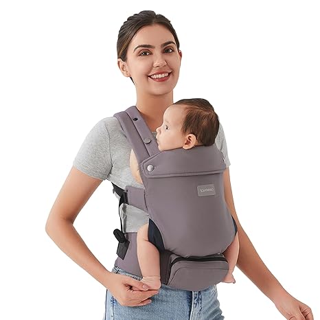 Baby Carrier Newborn - Ergonomic, Cozy and Lightweight Infant Carrier for 7-24lbs, Adjustable Neck Support, Ideal for Hands-Free Parenting, 100% Cotton, Purplish Grey