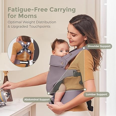 Perfect Support for Newborns: Our Newborn Baby Carrier is designed specifically for 0-6 months baby, supporting babies from 7-25 lbs. It ensures your little one is snug and secure, giving them the comfort they need to feel safe. Fatigue-Free Carrying for Moms: Carrying your baby should be a joy, not a burden. With thickened shoulder straps, a cross-back design, EVA waist support, and three-point support across your shoulders, waist, and abdomen, this carrier makes it easy to wear and reduces pain. Adjustable waist straps accommodate all sizes for a personalized fit. Safe and Healthy Growth: Are u ever worrying about your baby’s spine and hip development? Our baby carrier wrap mimics the womb with a Spine-Healthy C Shape and Hip-Healthy M Shape, wrapping your baby in a cocoon of safety and comfort. Smart Design with Practical Features: Our carrier comes with a foldable neck pad to support your baby’s delicate neck, and it can be flipped down for a better view as they grow curious about the world. Plus, the removable sunshade and handy pocket for your phone or the sunshade cover make every outing easier. Durable Safe Cotton Material: We’ve chosen 100% cotton for its durability and breathability. This baby carrier newborn stands up to the daily wear and tear of parenting, making it a reliable companion on your parenting journey. Certified Safety: Your baby’s safety is our top priority. That’s why our carrier is CPSC certified, giving you peace of mind with expert-approved security. You can trust us to keep your baby safe as you explore the world together. Perfect Baby Shower Gift.