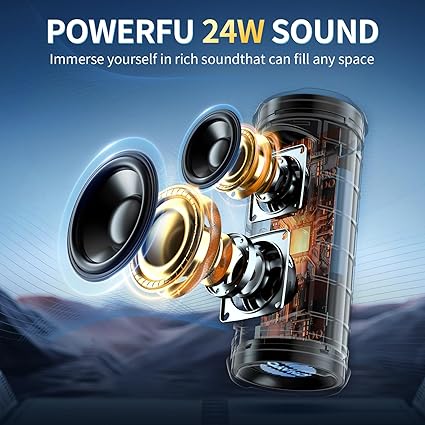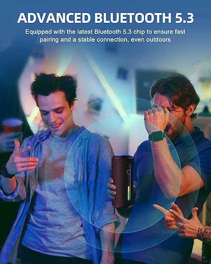 OHAYO Portable Bluetooth Speaker, IPX7 Waterproof Wireless Speaker with 24W Loud Stereo Sound, Active Extra Bass, Bluetooth 5.3, RGB Lights, Dual Pairing, Up to 30H Playtime for Home, Outdoor, Party