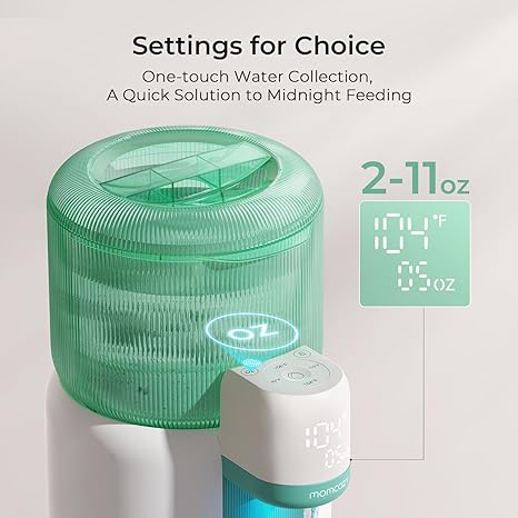 Traditional Baby Bottle Warmer Replacement - Momcozy water warmer provides faster and more suitable warm water at the desired temperature throughout the day. With a capacity of 2-11 oz and 4 temperature settings, this innovative product has won the 2023 MUSE DESIGN AWARD. Smarter, Easier, And More Perfect Partner At Night - Choose the need of capacity & temp, Momcozy instantly water warmer will automatically allocate. With memory function, no need for repeated selections. It's the ideal companion for nighttime use, with a built-in night light and one-touch water retrieval, a game-changer for parents and caregivers. Dual Water Tanks for Efficient Usage - The 2.5L/84Oz detachable water tank stores water, while the 500ml secondary tank heats and insulates, providing quick heating and energy savings. Provides mom with 21 bottles of 4oz milk with a single fill. And compatible with all brands and types of baby bottles. Accurate Temperature Control - Provides 4 temperature settings (98°F, 104°F, 110°F, 158°F), specifically designed to accommodate different formula milk and baby preferences. The 98°F option is ideal for formula feeding and mirrors the temperature of fresh breast milk, aiding digestion and nutrient retention. It can also function as a temperature-selectable water dispenser. Please make sure the appliance is used under the rated voltage range of 120V~ 60Hz, or the appliance will be damaged. Safe and Hassle-Free Feeding Solution - Made of 100% food-grade, BPA-free, high-temperature resistant materials, ensuring the safety of your baby. Our baby water dispenser incorporates a child lock function to prevent accidental scalding by little ones touching the buttons.