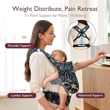 Hands Free Comfort: 3-in-1 Baby Carrier perfect for experiencing hands-free convenience in everyday use, outing or travel. Lightweight design and effortless wearability, Momcozy's original baby carrier is an ideal choice for travel and busy lifestyles. It ensures both comfort and elegance as you carry your little one while on the move. Tailored to Grow Together: Our carrier features three adjustable sizing positions, catering to your child's growth at every stage for 7-44lbs. Achieve a safe fit and Ergonomic natural "M" position, regardless of your baby's size that ensures baby's healthy hip and spinal development. Padded legs openning ensures unobstructed blood circulation in baby's legs, providing both comfort and safety. Ergonomic Waist EVA Support: Experience unmatched comfort during extended wear. The built-in EVA waist support not only offers crucial lumbar support but also minimizes strain on your back, ensuring a labor-saving and comfortable carrying experience.The thickly padded shoulder and waist straps are easily adjustable to accommodate all sizes for a personalized fit. Thoughtful Back Saver: Unlike conventional H-shaped carriers, the Momcozy Baby Carrier employs a revolutionary X-shaped back design. This forward-looking feature distributes weight better and evenly for unrivaled comfort for both you and your little one. Experience Every Joyous Journey: Momcozy's Baby Carrier unite Comfort, Connection, and Exploration in three comfortable positions tailored to your baby's every Need. Our baby carrier makes an excellent registry gift for new parents. Don't miss out on this opportunity to provide your baby with the best in comfort, safety, and style.