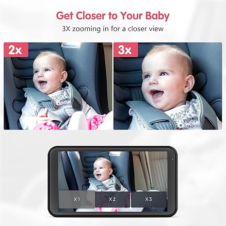 Full-color Night Vision: Our baby car camera features unique full-color night vision, providing a more realistic and vivid color image compared to traditional black and white cameras. Enhanced visibility with outstanding full-color night vision technology, you can see your baby's surroundings in vivid colors. Note: If you do not attach the car film, the night vision will be better. 3x Zoom Function: Zoom in up to 3 times with precision using our innovative car baby camera, giving you the ability to closely monitor your baby's well-being with enhanced detail. Enjoy crystal clear image quality with our car seat camera, ensuring that you can see your baby clearly and accurately at all times. Secure and Stable: Luckview baby car camera's secure buckle design sets it apart from other products, our car baby monitor is equipped with advanced buckle design, ensuring that your footage is always clear and steady. Say goodbye to shaky camera images and the hassle of frequently readjusting the camera angle and straps. Crisp 1080P Display: Experience an upgraded display with 1080P resolution in this Luckview baby car camera, delivering clear, smooth, and lifelike images of your baby. This ensures a better viewing experience while also safeguarding the parents' eyes. Effortless Installation & Operation: With its user-friendly design, this baby car monitor is a breeze to set up and use. Attach the camera to the rear headrest and connect it to the dashboard monitor for a quick and hassle-free installation process. Get up and running in just 3 minutes, no complex setup required. Excellent After-Sales Service: We are committed to providing excellent customer service. If you have any questions or concerns about your baby car camera, our customer service team is always available to assist you.