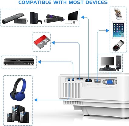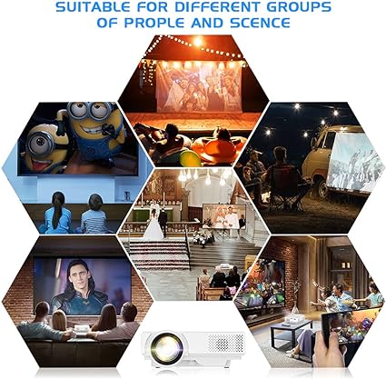[Convenient WiFi Connection] Connecting deivces with our wifi projector through wifi. We have TWO things to make it friendly user: (1) Updated the wifi connection steps, make it easier and more stable; (2) Updated the wifi connection speed, you can connect the wifi more quickly. So own our wifi projector, you can enjoy it anytime anywhere, it makes your life easier and happier. [Three Added Bonus Better than others] (1) Higher Brightness: Our upgraded brightness is higher than others. It is much brighter than most mini projectors. (2) Better Native Resolution: our wifi mini projector's native resolution is 1280 x 720P, with 1920x1080P supported, better than 90% mini projectors which are native 480P. (3) Add Bluetooth: It is a mini projector with wifi and bluetooth, you can hook up external speakers via bluetooth, the sound is greatly enhanced and sounded theater quality. [Meet Your Home Needs] Watch movies, take online classes, or keep the kids entertained with hours of cartoons and educational videos [ideal for use in low-light environments]. It's the innovation of traditional projector, built-in stereo speakers, adjust keystone and focus to get 32’’ 176’’ projection size with 1.5m-5m projection distance, bring excellent spectating experience. Perfect projector for outdoor movies and movie projector for indoor use. [Wide Compatibility and Application] Equipped with HDMI, VGA, AV, USB interfaces, the projector is compatible with TV Box, TV Stick, PCs, Laptops, Tablets, USB Flash Drive, players. It’s supposed to apply many environment—Home Theater, Video Game, Party, Outdoor activities. You can use it for small meeting in dark room, but it is not a professional office projector for PPT or text. As the copyright, some videos (such as Netflix) can't be played via phone connection (wifi or usb).