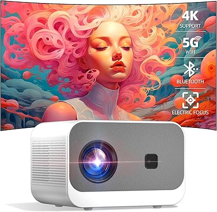 Mini Projector, 20000lm 4K Projector with WiFi Bluetooth Native 1080P, FHD 1080P HiFi Portable Outdoor Movie Projector Max 300”|ZOOM 50%|, TV Stick/HDMI/USB/AV/PS4/PS5/Laptop/Smartphone/Tablet Support