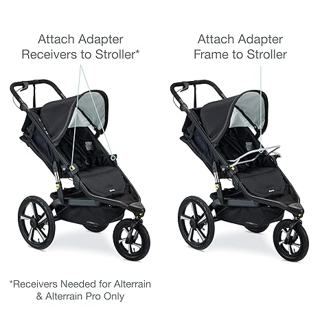 Create the perfect travel system: Easily Connect your Chicco infant car seat with your BOB single jogging stroller What's in the box: Adapter frame and 2 removable receivers; removable receivers needed for all-terrain/all-terrain pro only Compatible Chicco infant car seats: Key Fit 30, key Fit 30 zip, key Fit zip air, key Fit magic, Fit2, KeyFit 35 Compatible BOB single jogging strollers: Alterrain, all-terrain pro, blaze, Rambler, Revolution Flex 2016+/2.0/3.0, Revolution pro 2016+, Stroller Strides 2016+