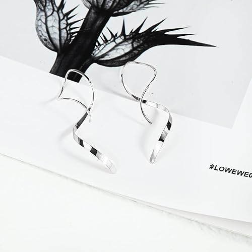 [High Quality] Spiral Threader earrings are handmade of 925 sterling silver. Our craftsmen wrap thin silver threads together to make this unique twist earrings. It will not fade or rust. It is hypoallergenic and preventing from ear infection, you can wear it even your ears are sensitive. 100% free from BPA, lead, nickel and cadmium. [Beautiful Shape] Simple but fashionable. Spiral threader earrings can be matched with any clothing to add a trace of vitality to any outfit. The smooth silver strip gently swings and glitters on your ear. These dangle earrings are light, elegant and durable, and are an great addition to your daily jewelry collection. [Suitable Size] Our sterling silver earrings are 2inch high. After many times wearing test and improvements, this size is suitable for most women. Drop earrings won't drag down your earlobes like other earrings, because they are so light that you can wear them all day. Check pictures of the product to determine whether the size is right for you. [Maintenance method] In order to prolong the service life of silver earrings, please store jewelry in a cool and dry place, such as a jewel box or bag, and avoid rubbing with other jewelry. In addition, keep it away from cleaning products and perfume, which will have a negative impact on your earrings. [Exquisite Gift] We have delicate box and beautiful handmade earrings, it can be a nice gift as well. Give it to your lover, mom, aunt and grandma, kids, best friends and anyone who is important to you. This is a thoughtful gift for Birthday, Mother's Day, Anniversary, Graduation, Thanksgiving, Christmas, Valentine's Day.
