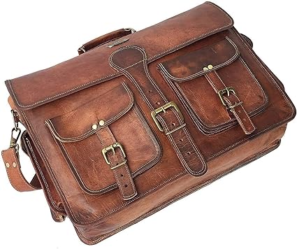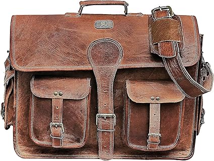 FULL GRAIN LEATHER : Our bags are made from full grain leather and lined with durable canvas and are Handcrafted by skilled craftsmenFULL GRAIN LEATHER : Our bags are made from full grain leather and lined with durable canvas and are Handcrafted by skilled craftsmen DIMENSION : 12 X 16 X 5 (height , width, depth) . Has an outer pocket that can fit about an iPad and other useful stuff easily laptop easily. STORAGE : With Size 16" width x 12" height x 5" depth ( Fits laptop upto 15.5 inches) , 1 big laptop compartment, 2 small sections and and 4 small pockets in front for cell phones etc plus 2 zipper pockets including one at the back , this bag fits almost everything you need to carry to office, college , school or even an overnight trip. COMFORT AND DESIGN : Has an adjustable strap with shoulder pad for comfortable carry. Has a handle on top for convenience PERFECT USE :With a mutlipurpose use and a classy distressed Vintage inspired look which never goes out of style , This bag is a great gift idea for Fathers Day , Birthdays , Valentines Day , Christmas, Graduation, Back To College Or Any Occasion Which Calls For A Gift . Makes a great gift for professionals, artists , students and all sorts of officials. The bag can be used as a Leather messenger bag for men and women ,laptop bags briefcase , college bag, meeting bag, gift idea.